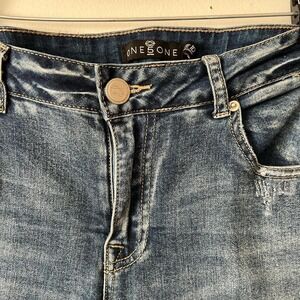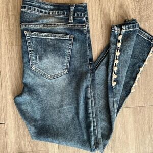 Blue skinny jeans with pearl beads detailing on the ankles Size 10