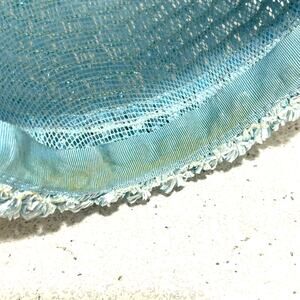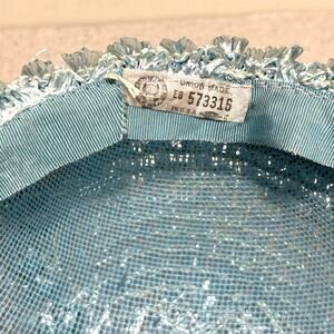 Blue straw hat with bow bowler style upturned rim union label mid century church
