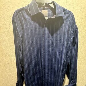 Blue striped Thomas Dean men’s long sleeve button-down shirt, size L