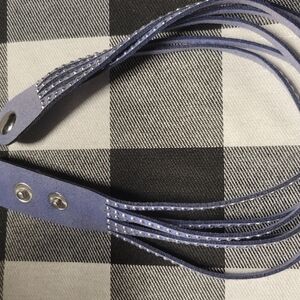 this leather studded double wrap around bracelet is blue and can be used as a choker on smaller necks as well. it has adjustable snap positions and no known flaws