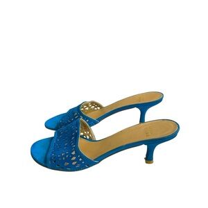 Blue suede leather cutouts perforated kitten heel slide mules 9.5M