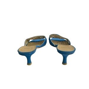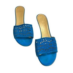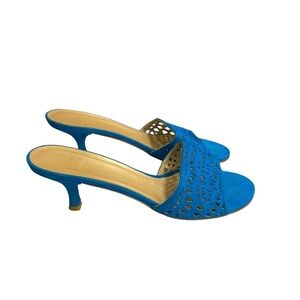 Blue suede leather cutouts perforated kitten heel slide mules 9.5M