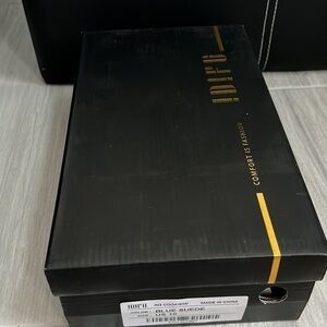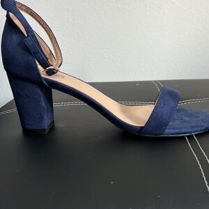 Beautiful Blue suede open toed chunky heels with ankle strap size 10. New in box.