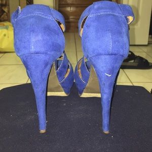 Suede blue pumps. Perfect for parties, going on dates or even when you Want to feel sexy. Worn ONCE‼️ Scuff mark on one shoe. Same shoe is missing a buckle to put strap through, but is easily fixable. 5" heel.