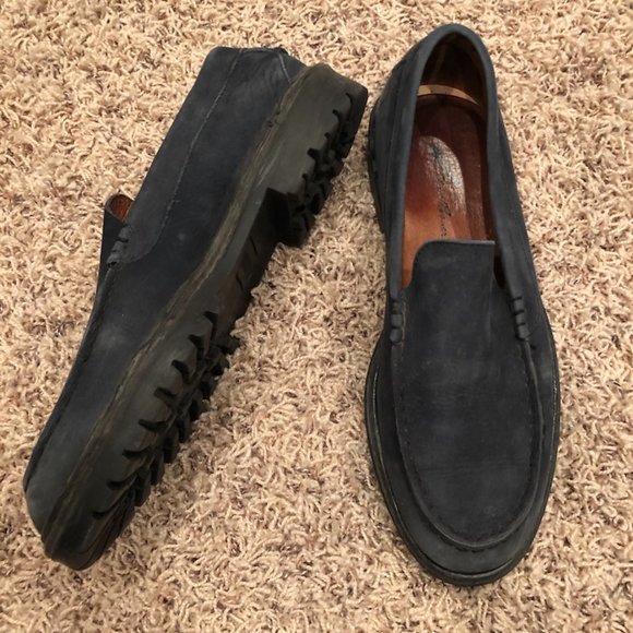 Mint condition. Blue suede loafers. Great tread. Original Eddie Bauer. Leather interior. Heel is 1 1/4" These are for a more narrow foot. Size is 11 N