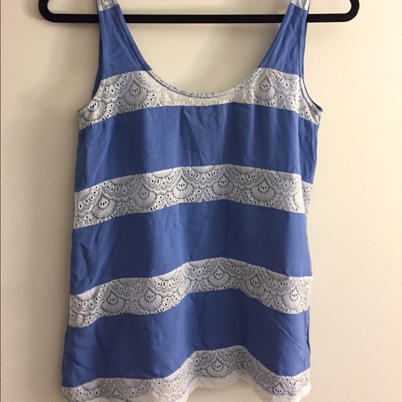 Blue tank top with lace details. Slight worn. Looks brand new. Price can be negotiated.