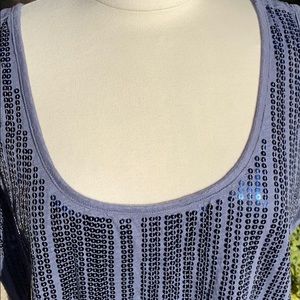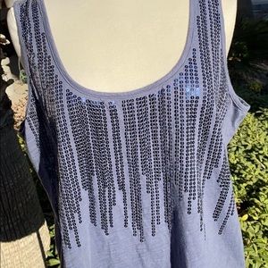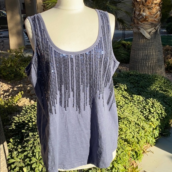 This is a grayish dusty blue with blue sequins pattern on the front. Oversized tank top for plus size ladies.
