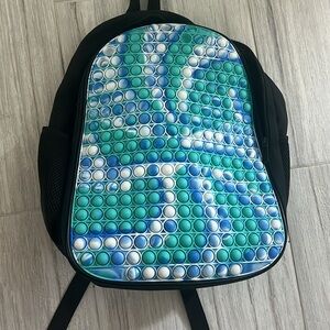 Used in excellent condition, Blue, teal, white, & black pop it backpack. So fun, fidget bag.