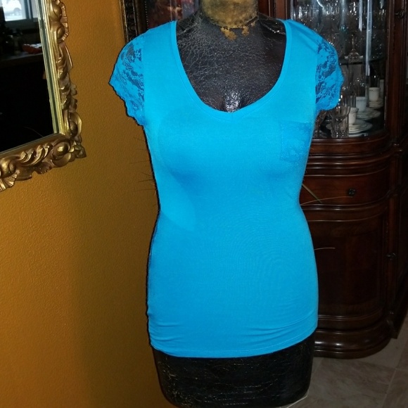 This super cute woman's baby tee had a lace pocket, sleeves and a full back.