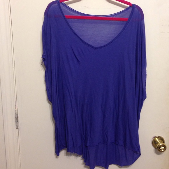 Sheer relaxed fit blue top. Short sleeve. So cute!