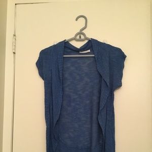 Cute summer top. Blue open front cardigan style. Perfect for layering over tanks or dress. 100% rayon. Approximately 28” long.