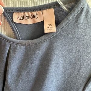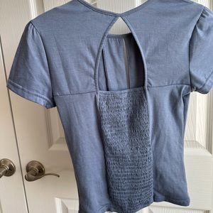 Willow and Root top, scrunch and open back, front has slit down the middle (very very "boobilicious")