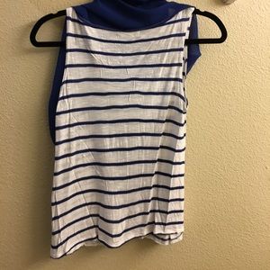 Sheer blue top. Attached white and navy stripped tank underneath.