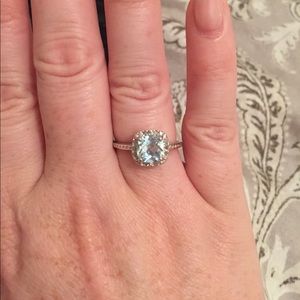 Blue topaz set in sterling silver with diamond halo. Beautiful ring from Macy's fine jewelry with box. Like new condition but a gift from an ex so I never wear it. Size 8. Offers encouraged as long as they aren't crazy👍🏻👍🏻