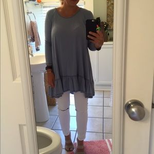 Blue top can be worn as a shirt or dress depending on height. I'm 5'1