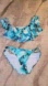 Blue tropical bikini with flounce top. Fun detail at side of bottoms. Excellent condition. Both top and bottom