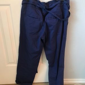 Fun blue pants with a tie and zip from. Mid calf length and machine washable. Originally from Anthropologie