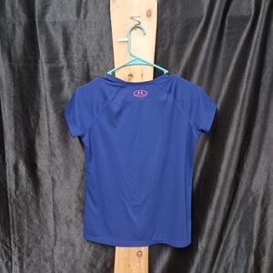 Blue w/ pink under armor logo size youth large short sleeve athletic t shirt
