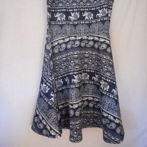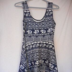 Blue white Elephant Indian Print Size M sleeveless Dress Derek Heart