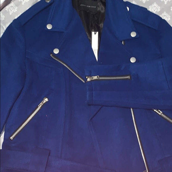 New w/ tags. Over sized sz S Blue biker Jacket. Feels very warm. Price is firm.
