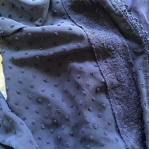 Blue texture wrap top. Long sleeves and crochet detailing makes it super flattering