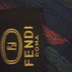Blue w/stripes Fendi Roma silk tie - logo woven in lining