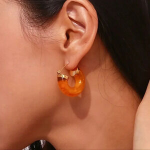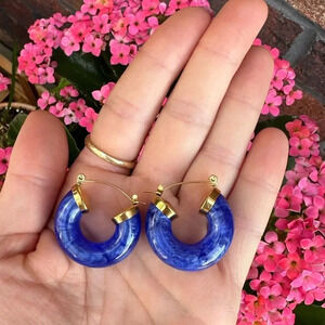 Blue 18K Gold Stainless Steel Hoop Earrings