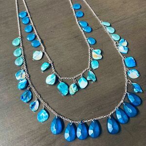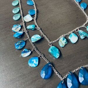 Beautiful teardrop blue bead and natural sheep double strand silver chain necklace in good preowned condition.