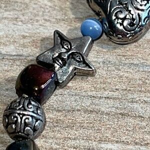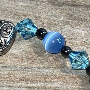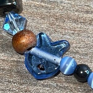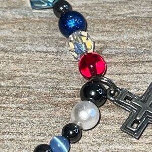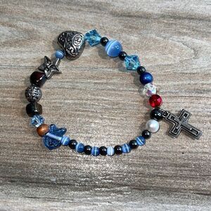 Blue Beaded Stretch Bracelet With Fish Cross Heart Star
