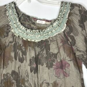 Blue Bird Light Weight 3/4 Sleeve Top. Size Sm. Ribbon around top and sleeves. Excellent condition.