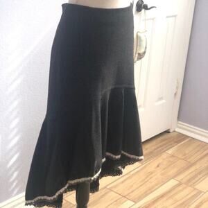 Key Features: Blue Birdy charcoal grey hi-lo skirt with white crochet trim. Back zipper dry clean only.