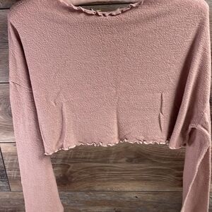 Blue Blush Long Sleeve Crop Top, Size Small, Dusty Rose
