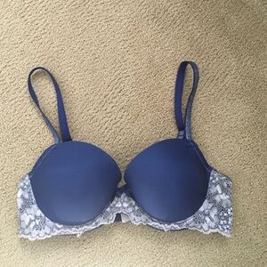 Cute blue bra with a lace band and has some shimmer on the straps. Victoria's secret dream angels lined demi