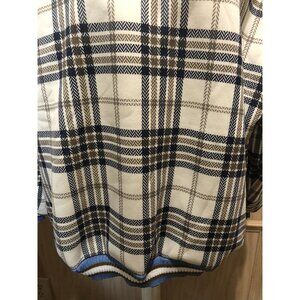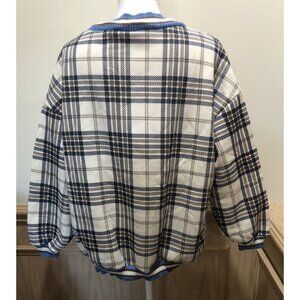 Blue/Brown/Cream Plaid Long Sleeve V-Neck Pullover Top~ Size M ~