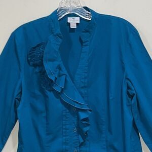 Blue Button Up Long Sleeve Dress Shirt By Worthington. Size Medium.