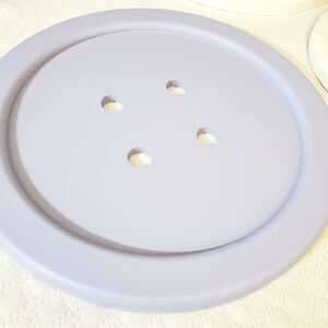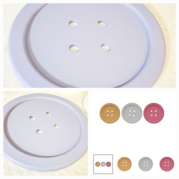 One blue button wall decor. Great for craft rooms or baby nursery. It's never been used, but it might not look like it from beign stored. I do have a couple of white buttons on a different listing. You can see them pictured here. Sold individually. Please refer to pictures for best description and condition verification.