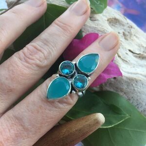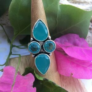 Blue Chalcedony Sterling Silver Gemstone Ring Size 8.5