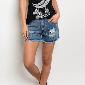 Great pair of mid rise cutoffs jean shorts! Denim fraying trim,distressing. Zipper button closure five pockets. Breathable material! Summer attire, festival fashion, bohemian chic to western style!