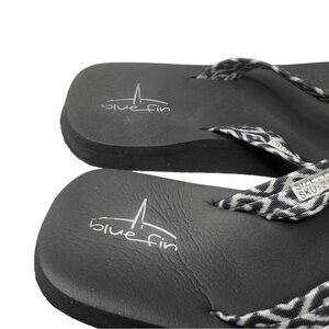 BlueFin Womens Thong Flip Flops Black with Black & White Pattern Straps Size 11