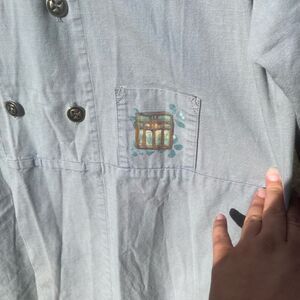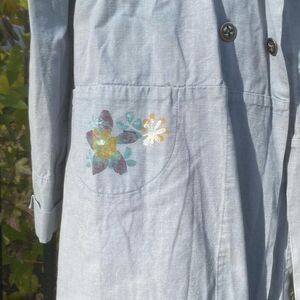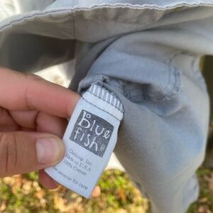 Gorgeous blue fish hand painted jacket. Double breasted. Lightweight. Rare item! Made in USA. 100% cotton. Fits like a Large.