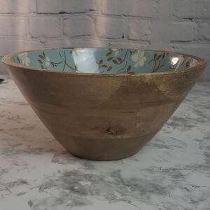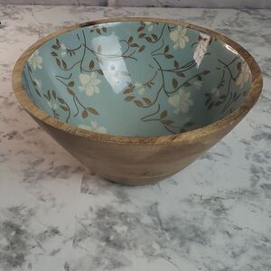 Blue Floral Wooden Bowl
