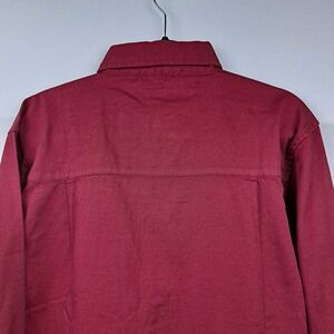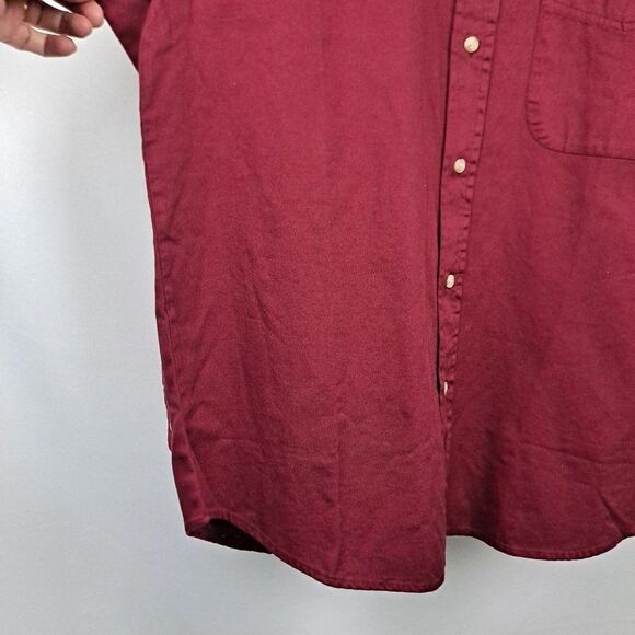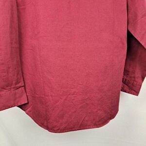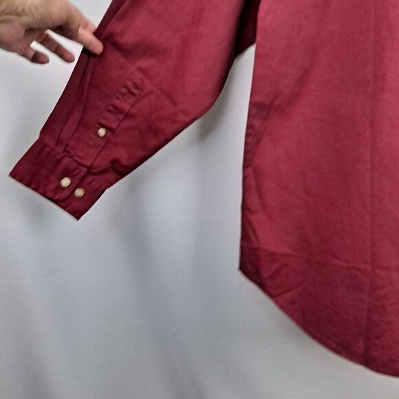 Deep red, size medium. Oxford style button front shirt with long sleeves. Button down collar. Beautiful twill fabric!. Measures 45" chest, 31" length. Sleeve, 21.5" from pit to bottom .