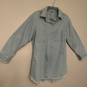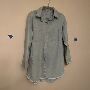 This stylish button-down has lightly fringed cuffs and waist, giving it a fun, slight country vibe.