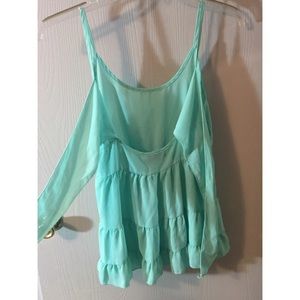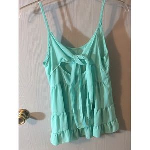 super cute blueish-green tank with ruffles and ties in the back!