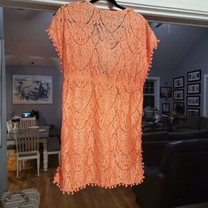 Blue Island Women's Orange Lace Swim bathingsuit Cover-up Kimono Tunic Sz Medium