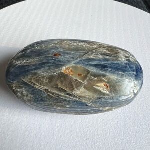 A blue kyanite crystal meditation palmstone is a beautiful, soothing tool that aids in meditation. Known for its high vibration, it aligns and clears chakras, promoting tranquility and mental clarity. It enhances communication and intuition, making it ideal for spiritual growth and emotional healing.