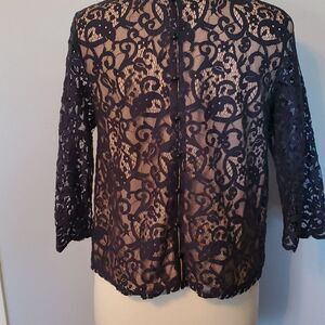 Beautiful Blue Lace 3 quarter length sleeve blouse by H&M with nude color liner under lace. Pit to Pit is 19 inches. Non Smoking Environment