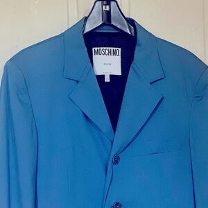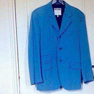 Gorgeous mid weight sports jacket in ocean blue. It features a minimal mesh lining, 3 button closure, a rear spit, and ample pockets that have yet to be used.