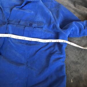 M Roz & Ali blue modal blend button up shirt. Sleeve tie backs. 2 front pockets. No visible wear.