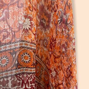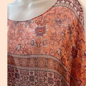 Blue Moon Women’s Top Floral Kimono Sleeve Pullover- Poncho Style Blouse- Size 2 - Red/ Gold